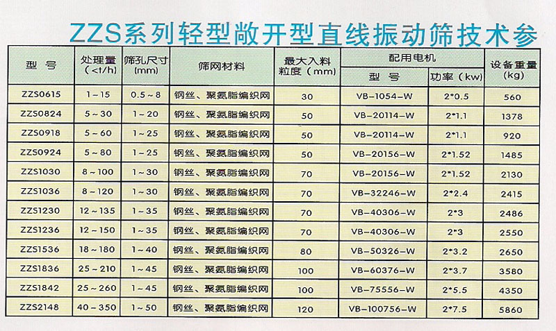 ZZS系列直線振動篩是一種以振動電機為激振源的新型振動篩分設(shè)備,開發(fā)有輕型篩和重型高效篩兩大系列,其中輕型篩通常是水平安裝,且多采用編織篩網(wǎng),廣泛應(yīng)用于冶金、礦山、煤炭、化工、建材、耐火、食品加工等各行業(yè)對中、小顆粒物料及各種粉狀物料的分級、脫水、脫介;而重型高效篩一般采用5°-15°傾角安裝,且多采用篩板,廣泛應(yīng)用于冶金、礦山、煤炭、化工、建材、耐火等各行各業(yè)對大、中顆粒物料的分級。