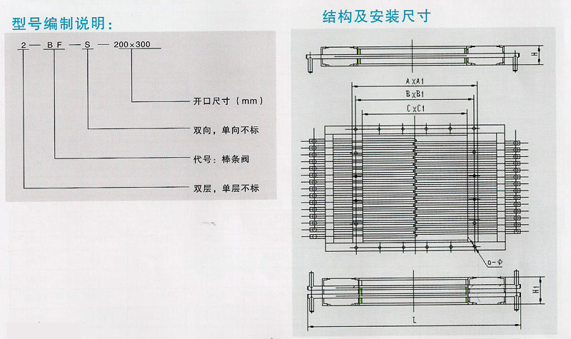 本閥主要由框架、棒條組成,當(dāng)棒條插入框架上,則一組棒條組成一平行柵板,將塊狀物料阻擋在閘門一側(cè),若抽出一條則柵板出現(xiàn)一條較大的空隙,物料就可以從該空隙進(jìn)入閘門的另一側(cè),抽出棒條的多少應(yīng)由工藝流程的需要來決定。